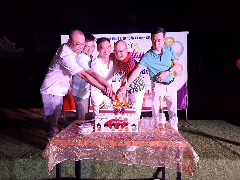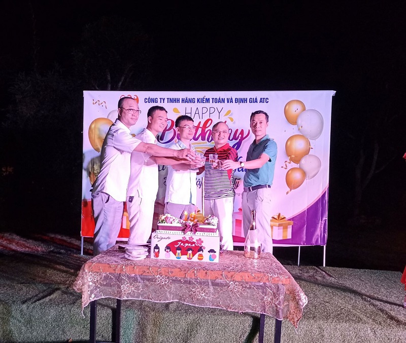Ban giám đốc công ty cùng nhau cắt bánh sinh nhật và nâng ly chúc mừng tuổi 19 của ATC