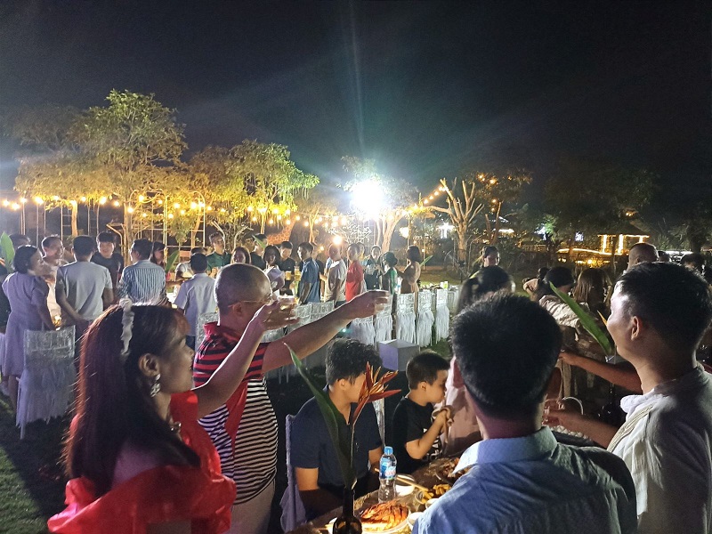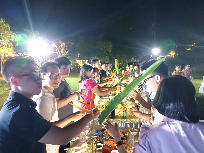 Các cán bộ nhân viên hòa mình vào không khí vui tươi, rộn ràng dưới ánh đèn lung linh mừng sinh nhật công ty