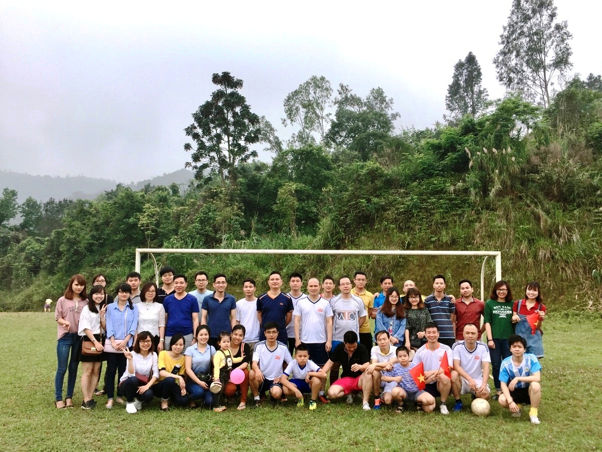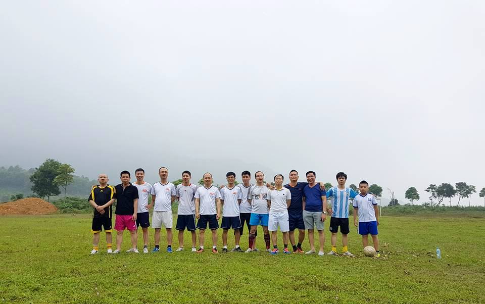 Hình ảnh các CBNV và đội bóng ATC chụp ảnh lưu niệm tại sân cỏ Khoang Xanh - Suối Tiên