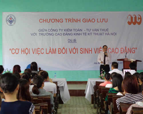 Ảnh. Lãnh đạo ATC Giao lưu với các bạn sinh viên trường Cao đẳng kinh tế kỹ thuật Hà Nội.