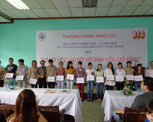 Ảnh. ATC trao học bổng cho các sinh viên trường Cao đẳng kinh tế kỹ thuật Hà Nội.