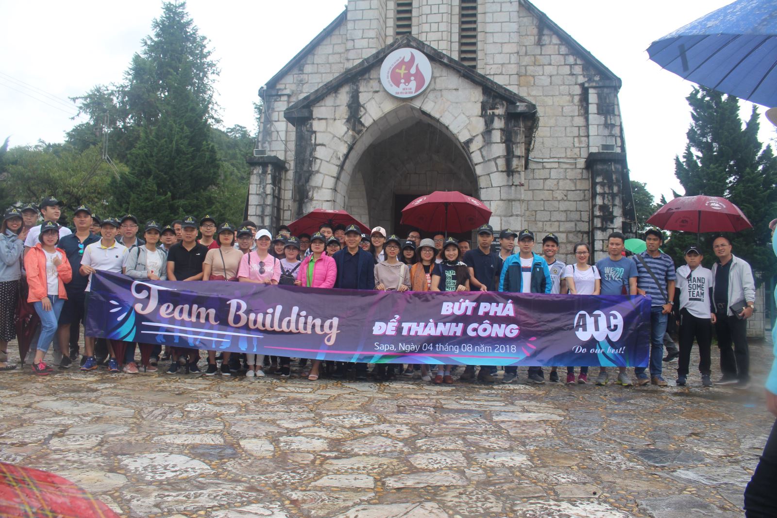 1. Tập thể CBNV chụp ảnh lưu niệm tại nhà thờ đá - nét đẹp cổ kính biểu tượng của Sapa