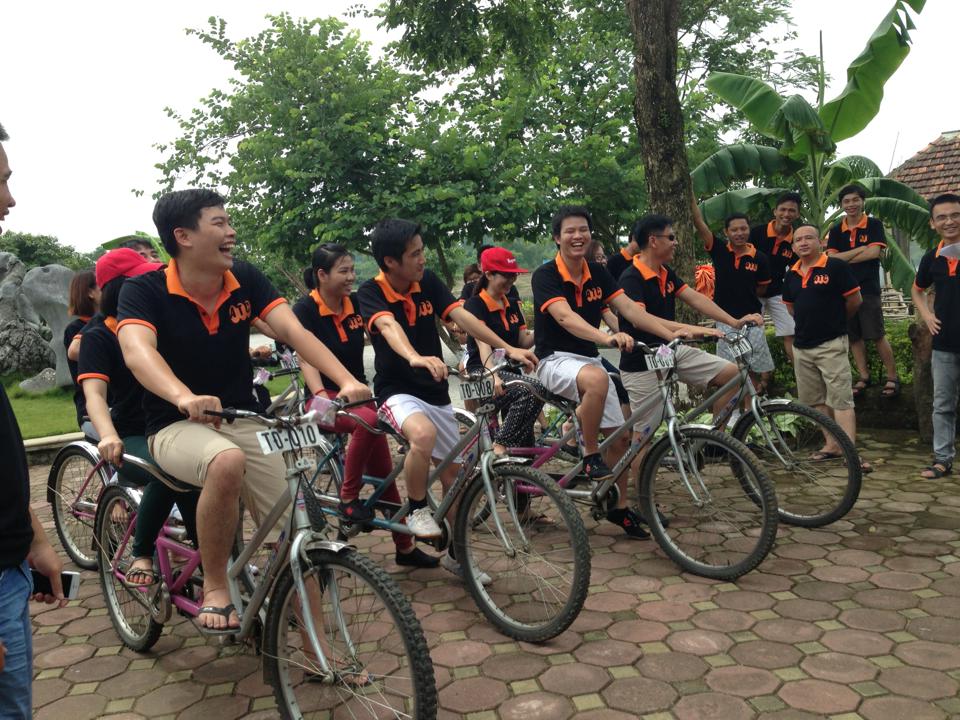 Thi đua xe đạp đôi tiếp sức - trò chơi mang tính đồng đội, hiểu ý nhau đầy thú vị.